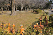 庄内川北部の洪積台地低位段丘面南西端に築かれた味美古墳群中の最大の前方後円墳で、前方部を北西に向けた全長94m、前方部幅65m、後円部径47m、高さ6mの規模を誇り周濠、くびれ部北東側に造出を有する。尾張地方有数の大型前方後円墳として昭和11年(1936)国史跡に指定され、春日井市の公園緑地として保存されてきた。昭和42年(1967)周濠への自衛隊機墜落に伴う復旧整備に際し、馬・人・水鳥等の形象埴輪や円筒埴輪が出土しており、さらに平成3年(1991)から平成6年(1994)にかけて二子山公園の再整備に伴う発掘調査が実施され、周濠外側に土坑状の遺構、現周溝と略平行する溝状遺構が検出され、多くの遺物が出土した。これらは円筒埴輪や人物・馬・家・蓋など多様な形象埴輪のほか、6世紀前半代の須恵器の蓋坏、商坏、器台のほか装飾付須恵器類を含んでおり、造出側の周濠と溝状遺構との間に埴輪群像の配列空間や墓前祭祀的な遺構の存在が推測させることとなった。またこれらの埴輪や須恵器は蛍光X線分析によって北方約8kmにある下原古窯跡群で焼成されたことも判明した。こうした調査事実を普及啓発するため公園敷地内にガイダンス施設にあたる「ハニワの館」を建設し、古墳群の情報や出土品の展示を行っている。(愛知県)