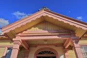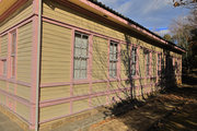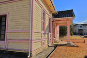 木造平屋建、寄棟造、桟瓦葺の建物で、基礎は外周部分に延石を廻した布基礎とし、そ上に土台を置いて柱を建てている。建物内部の基礎は、束石を置く。外壁はドイツ下見板張り、内壁は腰壁を板壁とし、板壁の笠木より上は木摺(きすり)漆喰塗りである。床は杉板張りである。天井は3尺(約0.9m)ピッチの格天井とし、天井高は実測値3.68mである。小屋組はクィーンポストトラスとする。正面玄関を西に開き、梁間16.4m、桁行20.3mの長方形平面を基本とし、正面玄関には車寄せが張り出している。出入口は3か所あり、西側中央に車寄せの付く正面玄関を設け、北側と東側にも出入口がある。窓は北側に6か所、南側に8か所、西側に5か所設けられている。このうち、西側の小窓を除き全て上げ下げ窓である。意匠の特徴として、外観は18世紀にアメリカで流行したジョージアンと呼ばれる木造下見板張りの様式を基本とし、19世紀アメリカで流行した木造建築の様式であるスティックスタイルが加味されている。ジョージアンは、イギリスからアメリカへの移民がもたらした木造下見板張り建物の一様式であり正面にペディメントを見せたり、シンメトリー(左右対称)を意識した外観等、西洋古典建築の部分的な特徴を取り入れたものである。スティックスタイルは、下見板を外側から付柱で抑え、窓の上下などの位置に水平材を廻しているもので、下見板を地とした場合に、それらの縦材・横材が図として浮かび上がる構成を取り、縦材・横材が棒(スティック)状に浮かび上がることからこのように呼ばれる。下見板張り建物は、明治政府が北海道の開発のため、アメリカから招いた技術顧問団によって北海道に流入し、その後全国に広がった。この下見板張り建物は下見板コロニアル建築とよばれる。いっぽう、玄関車寄せの天井には菱組天井が施されている。これはベランダコロニアル建築の典型的な特徴である。この本来は共存しない建築が「西洋の建物」のイメージを象徴するものとして同時に採用されていることは、日本建築史上の特徴が現れていることを示す。内観は天井や独立柱に白ペンキが施されるなど、基本的に西洋建築の手法がとられているが、天井が格天井であることや、独立柱と格天井の間の柱頭飾りが社寺建築の組物である大斗の意匠とするなど日本の伝統的な特徴も見られ、西洋建築と日本建築のそれぞれの意匠が混在している。