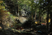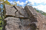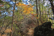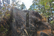 大きな岩が現れる。岩が重なっている下が通れるようになっていて、ここは「胎内くぐり」と呼ばれる。