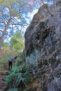 鏡岩の上に出る。大変険しい道で、はしごになっている所もあるとのこと。今回は止めにした。
