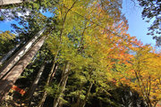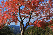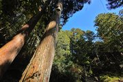 さらに登ると左手に杉の大木が現れる。高い所まで枝がなく、上が傘のように開いているので傘杉と名付けられている。