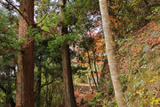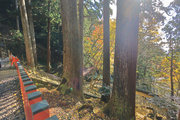 奥の院や鳳来寺山の頂上へ行くには、本堂の左の坂を上ってゆく。