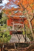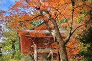 入母屋造、銅版葺(もとは檜皮葺)、蟇股(かえるまた)の斗拱に、天竺様式と見られる朱塗りの重層楼門である。