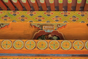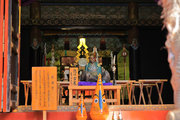 正面中央の額は「鳳来寺」と書いてある。「鳳来寺略史」という本に「聖武天皇がご病気の時に、光明皇后が鳳来寺薬師如来に病気平癒の願をかけられたところ、天皇は全快されたので、皇后はお礼に額を書いて掲げられた」とある。