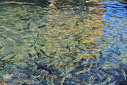 玉川温泉から到着。以前はそれほど意識しなかったが、今回は水の青さに卒倒しそうになる。湖岸で魚を見ていても飽きない。