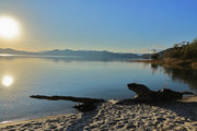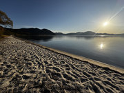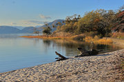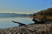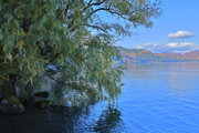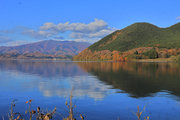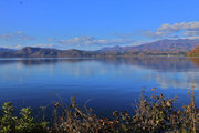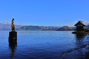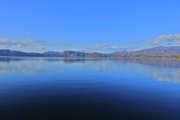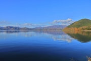 青い水面と緑の外輪山 |