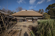 柏市花野井字原974-1 旧吉田家住宅(千葉県柏市花野井) 主屋 重文 近世以前/民家 江戸末期 嘉永7(1854) "桁行20.4メートル、梁間10.1メートル、寄棟造、茅葺、東南北各面庇付、西面渡廊下附属、桟瓦葺、釜屋 桁行4.4メートル、梁間5.3メートル、切妻造、桟瓦葺、水屋 桁行4.7メートル、梁間5.3メートル、切妻造、桟瓦葺" 木札1枚、味噌蔵1棟、普請関係文書3冊、家相図1枚 20101224