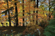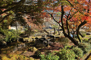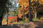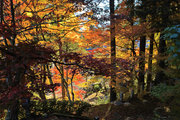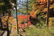 現在の公園は、多くのサクラ類やモミジ類、ツツジ類が植栽されており、濃緑色のスギ林を背景に、色鮮やかな優美な景観が見て取れる。