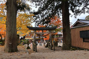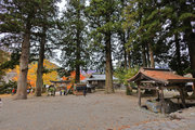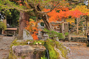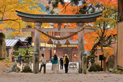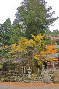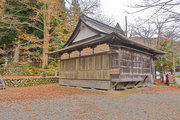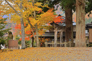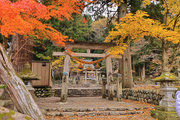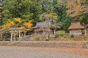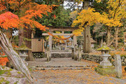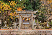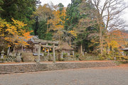 ここは山が川に迫り、平坦部が括れている所で、神社の境内は山麓の傾斜地にあり、杉などの境内林に囲まれている。