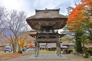 明善寺本堂は入母屋造り、茅葺きで、鐘楼門は木造2階建、入母屋造り、茅葺きで、2階に銅鐘を吊り、1階を通路としている。