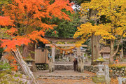 集落の守り神である八幡神社は、集落の中央より南に寄った場所に祀られている。