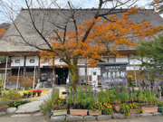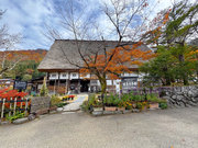 和風の休み処となっている合掌庵。細かい和風の飾りにもてなしの心を感じる。記念切手に登場する家。