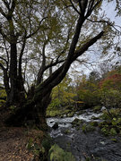 硫黄の臭いがします。火山の蒸気が凍って樹氷らしきものが枝に見えます。