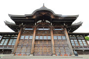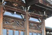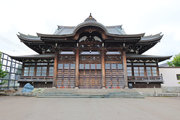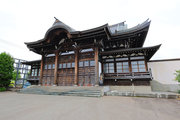 市北東部,国道40号に面する境内の奥に建つ。正面は欄間等に丁寧な彫物を施した桁行3間の向拝が唐破風屋根に覆われる。本堂は立ちが高く,軒下の小壁に蟇股を配した裳階を廻し,組物と蟇股を多用した華やかな内部空間をもつ。道内で有数の本格的寺院建築。 (文化財データベース)