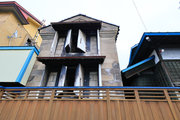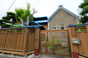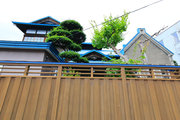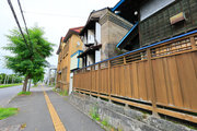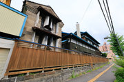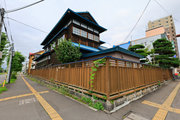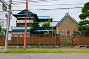 市中心部,幹線道路が直交する角地に立つ。L字型平面,入母屋造の和館に,切妻造の洋館が接続する。和館の細い押縁付の板張壁と上部の小壁,洋館の柱型と段状のコーニスで囲まれたドイツ壁が対照的な外観を呈し,地域のランドマークとして親しまれている。 (文化財データベース)
