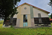 職員室棟の北に渡り廊下で接続する木造平屋建の東西棟。屋根は切妻造の鉄板葺である。外壁は腰を鎧下見板張、上部をモルタル塗とし、上下2段に窓を開く。内部は東端にステージと器具庫、西端に物入を設ける。2ヒンジ・トラスの木造小屋組に構造美を見せる。