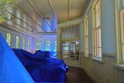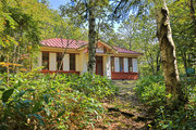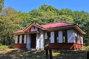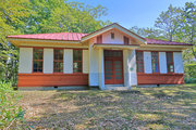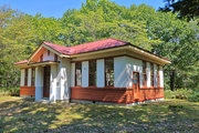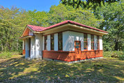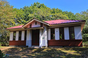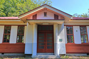 市街地の北方に位置する公園内に西面して建つ。桁行15m梁間7.3m、寄棟造平入の木造平屋建。腰下見板張とし、切妻を見せる玄関を中心として左右対称に縦長上下窓を配する。玄関奥に風除室を設け、内部は一室とする。丁寧にデザインされた瀟洒な建築物。
