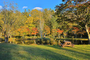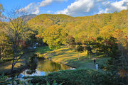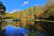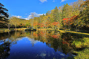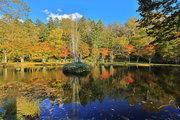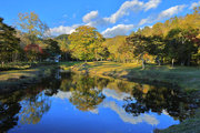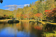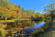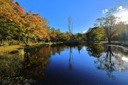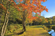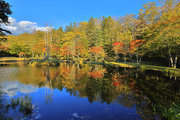 紅葉には早すぎて誰もいない。水音が心地よい。