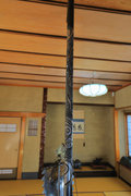 木造二階建で、西正面に入母屋屋根を見せ、北半は上下階に切妻屋根を重ねる。南面東端から切妻屋根の客間が突出。外壁はモルタル塗。玄関南の煉瓦造煙突が目をひく。玄関北の応接室を洋室とし、中廊下の南北に和室を配す。造作の丁寧な事業家の住宅である。(文化財データベース)