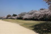 国道2号線とJR山陽線に挟まれた武庫川左岸(東側)河川敷は武庫川緑地と呼ばれる。武庫川沿いには多くの桜のスポットがあるが、ここは広々とのんびりしていて、特に高齢者に人気があるようだ。