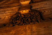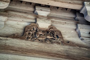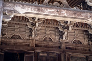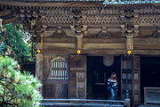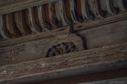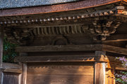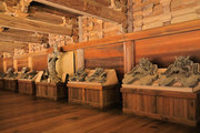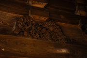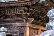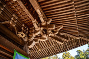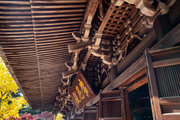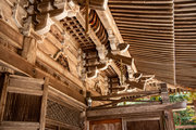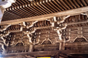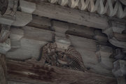 軒下の四隅に左甚五郎作と伝えられる力士の彫刻のうち西北隅の一つは、重さに耐えかねて逃げ出したと言う伝説は有名。