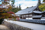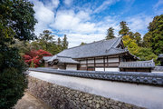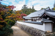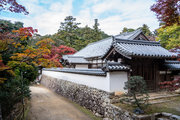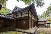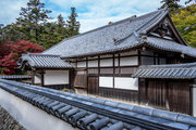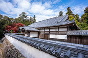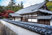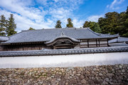 姫路市書写2968 寿量院 客殿及び庫裏 重文 近世以前/住宅 江戸中期 貞享5(1688) 桁行29.7m、梁間19.3m、一重、入母屋造段違、中門及び玄関附属、中門切妻造、玄関唐破風造、本瓦及び銅板葺 土塀1基 19560628