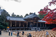 桁行21.9m、梁間18.3m、入母屋造、西面張出附属、東面向拝一間、向唐破風造、本瓦葺
