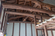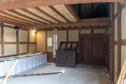 主屋解体時の調査で整形6間取りの平面構成や、茅葺屋根、低い軒先など古式の民家の姿が明らかになりました。