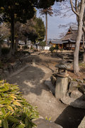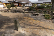 周囲は土塀等で囲まれ、南西には園池が広がっています。敷地内には主屋、長屋門、引き続き矩折れに長屋、土蔵(米蔵、内蔵、新蔵)の6棟の他、屋敷神、裏門等が残っています。また長屋西端には藩主を迎え入れるための御成門が建てられています。