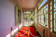 下見板張りでオイルペンキ塗りの木造の二階建で、正面の玄関から左右対象に軒を連ねる珍しい異人館で、かつては外国人向けのフラットでした。現在の邸内はフランス美術品、豪華な調度品を中心に、アール・ヌーボーのガラス工芸家エミール・ガレらの作品やパリ期の藤田嗣治氏らの絵画等も展示しています。貴重な初期のルイ・ヴィトンのトランクは、はるか遠い外国からの海を渡って日本人にやってきた人々の船旅を思い起こさせるでしょう。