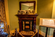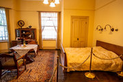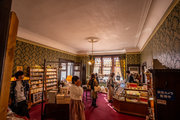 「シャーロック・ホームズ」の部屋が再現されています。ホームズのトレードマークとも言える、インヴィネスケープやディアストーカーを着用したまま