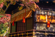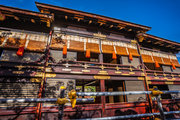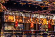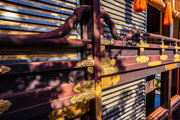 木部は内外とも全てを春慶塗(しゅんけいぬり)と黒漆塗に塗分け、長押(なげし)や垂木(たるき)の先には金箔を施した飾り金具を打つなど非常に華麗で繊細な造りとなっています。