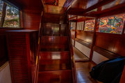 江戸時代、姫路藩主が河川での遊覧に使っていた『川御座船(かわござぶね)』の屋形部分だけが陸上げされたものです。建造年代は、1682~1704年の間と推定されます。昭和55年に保存のため移築されました。