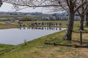 おおべ逆さ桜、七分咲きでも絵になるようだ。
