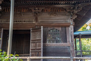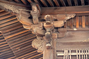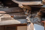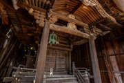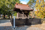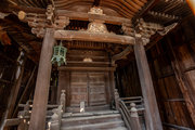 桁行一間、梁間一間、入母屋造、千鳥破風付、向拝一間、向唐破風造、栩葺