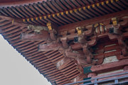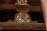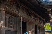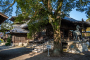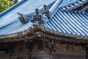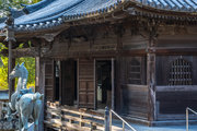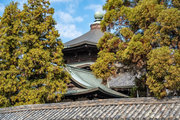 桁行三間、梁間二間、袴腰付、入母屋造、本瓦葺、銅鐘一口