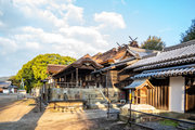 本殿と拝殿が境内を隔てて建っている。その形態を飛び拝殿と呼び、神社建物配置の古い形を残した遺構である。