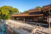 たつの市御津町室津74 賀茂神社 西回廊 重文 近世以前/神社 江戸中期 元禄(1688-1703)頃 桁行七間、梁間一間、一重、唐破風造、檜皮葺 19740521