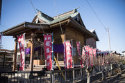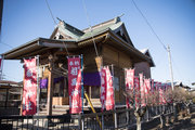 それでも節分の赤い旗が並んでおり、近隣の住民に大切にされているだろうことは感じられます。覆屋はあるものの本殿の屋根の劣化が気になりました。