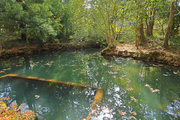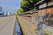 両岸には桜が植えられ、4月の開花時には杜若(かきつばた)の若緑とともに美しい景観が楽しめる。
