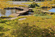 11枚の赤戸室石を使って雁が列をなして飛んでいる姿に作られていることから雁行橋と呼んでいる。