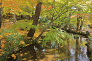 園内を流れる曲水の豊かな水は、1631年の寛永の大火の翌年、3代藩主・利常の命により町人板屋兵四郎が、城の「防火用水」として作った辰巳用水を利用している。