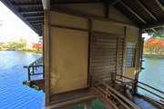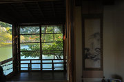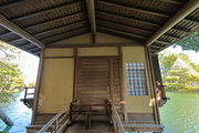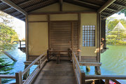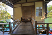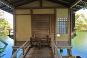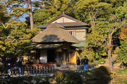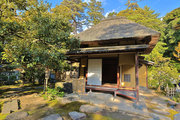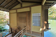 園内で最も古い建物で、安永3年(1774)に建てられた茶室である。茶席の次の間の袖壁に夕顔(瓢箪)の透かしがあるので夕顔亭という亭名が付けられている。