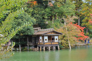 辰巳用水取入れ口上の山崎山と御亭の佇まいが素晴らしい