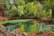 宝暦7年(1759)の金沢大火で蓮池庭も背反焼失した。11代藩主が復興に着手し、安永3年(1774)いまの夕顔亭や翠滝(みどりたき)を築造した。