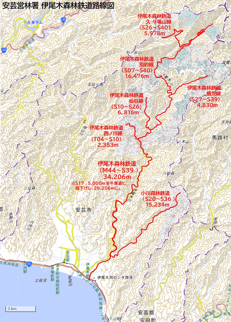 旧魚梁瀬森林鉄道施設に次ぐ規模で、管内で最も古い森林鉄道