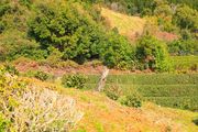 風光明媚な茶畑に咲く遠山桜は枯れてしまい、次世代が生育中。
