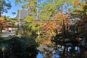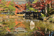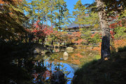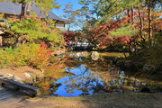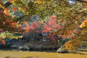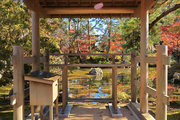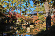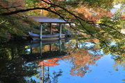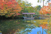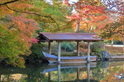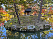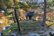 梅松苑の神苑の中、金竜海という大きな池のほとりに木々に囲まれて建っています。