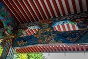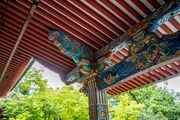 余りに見事な出来栄えなので、一羽抜け出して飛び去ったと伝える。狩野探幽筆「抜け雀」−七不思議の一つ唐門 「勅使門」