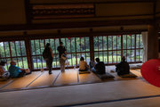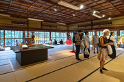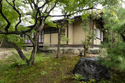 解説:本館の南側に接する東西棟・妻入の細長い建物で,1階は当初70畳敷の点茶席,2階は休憩室・待合室で床・棚付の2室とする。